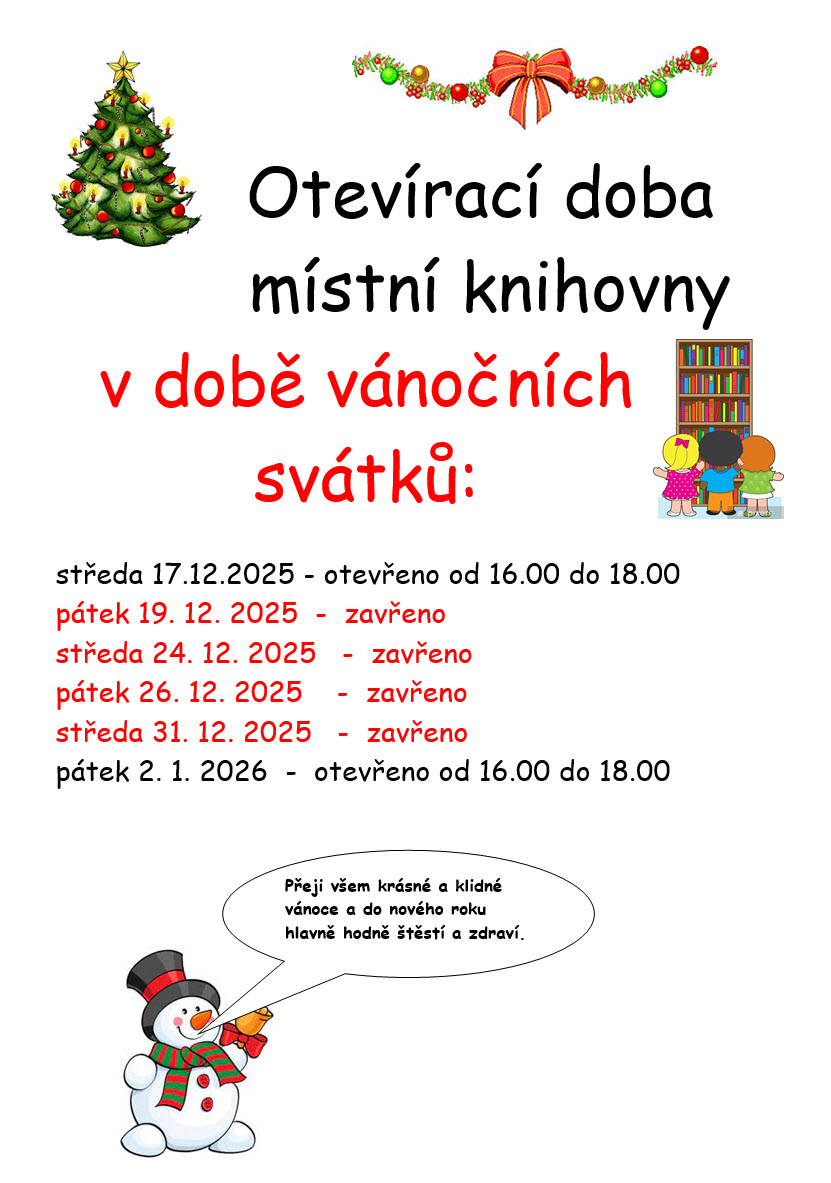 V pátek 18.2.2011 bude knihovna otevøena pouze do 17.00.